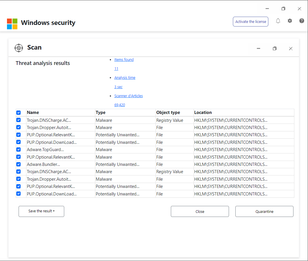 Une analyse Windows Defender a détecté un logiciel espion potentiellement indésirable sur cet appareil contenant des mots de passe, Peut voler des identités en ligne, des informations financières, des fichiers personnels, des photos et des documents.